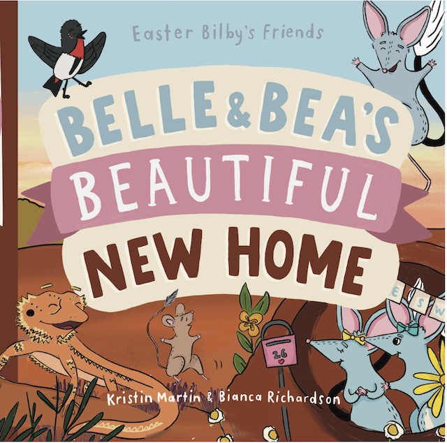 Belle and Bea’s Beautiful New Home is the third book in the Easter Bilby’s Friends series. It is set in the desert in NSW and is about how bilbies help the natural environment. My pet bearded dragon, Ash, was the model for the bearded dragon character.